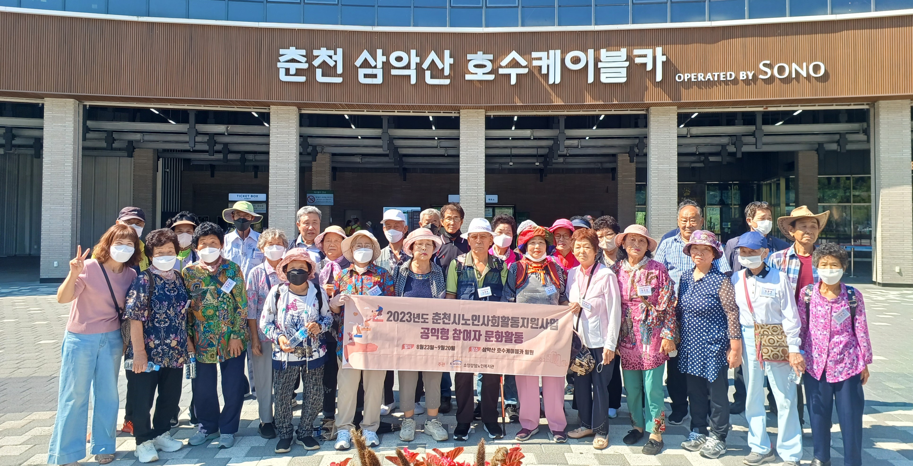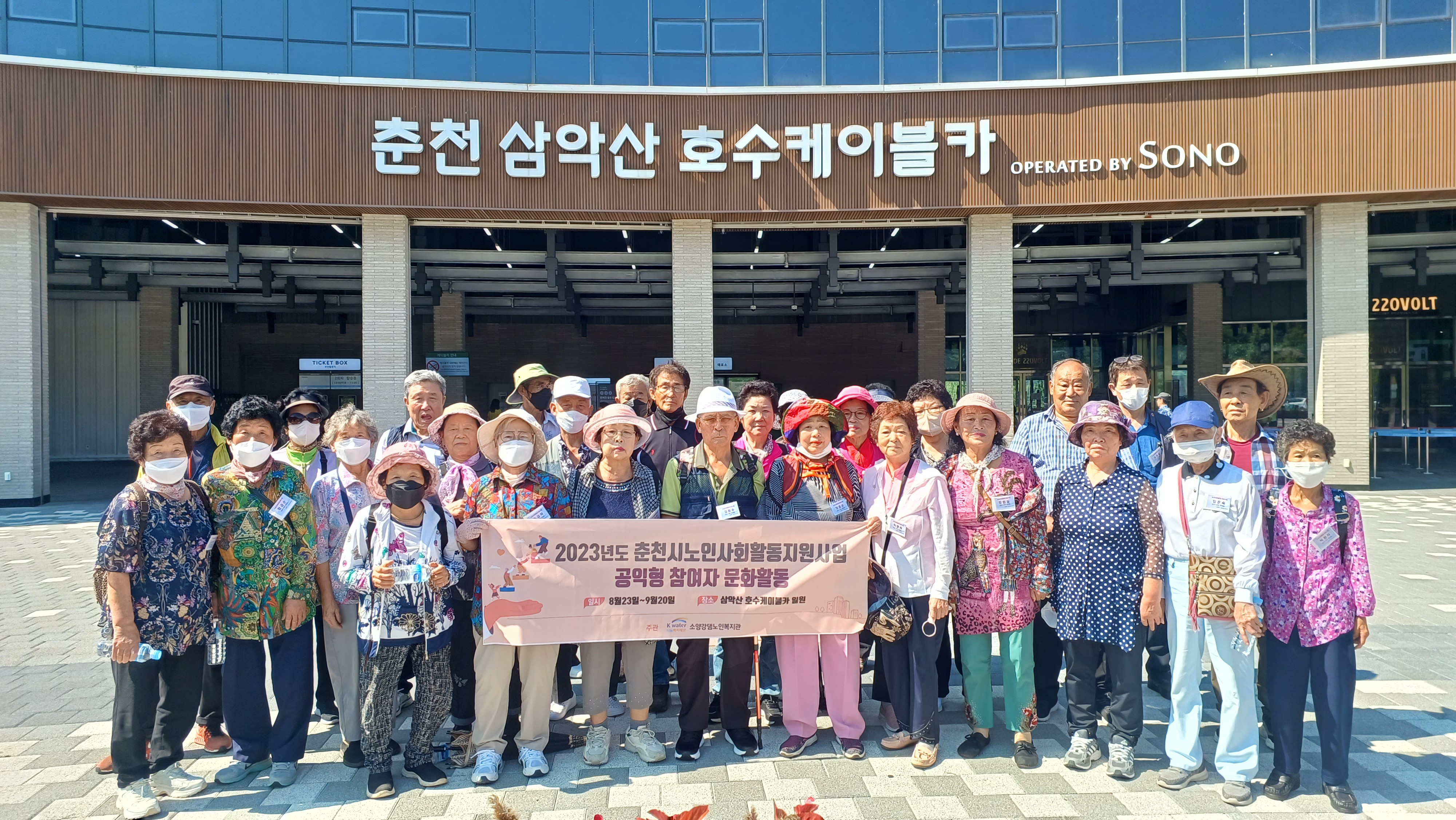 소양강댐 노인복지관 (관장 허미숙) 2023년 춘천시 노인 사회활동 지원사업 공익형 참여자 문화할동 2023년 8월23부터 ~ 9월20일까지 인솔자 소양강댐 노인복지관 일자리 담당 팀장 이 0 수 외 직원2명은 총인원 313명을 8번에 거처 춘천 삼악산 호수케이불카 탑승 행사 및 점심은 윗샘밭 장호닭갈비식당에서 맛있는 닭갈비로 식사를 대접해 드리고 있다.