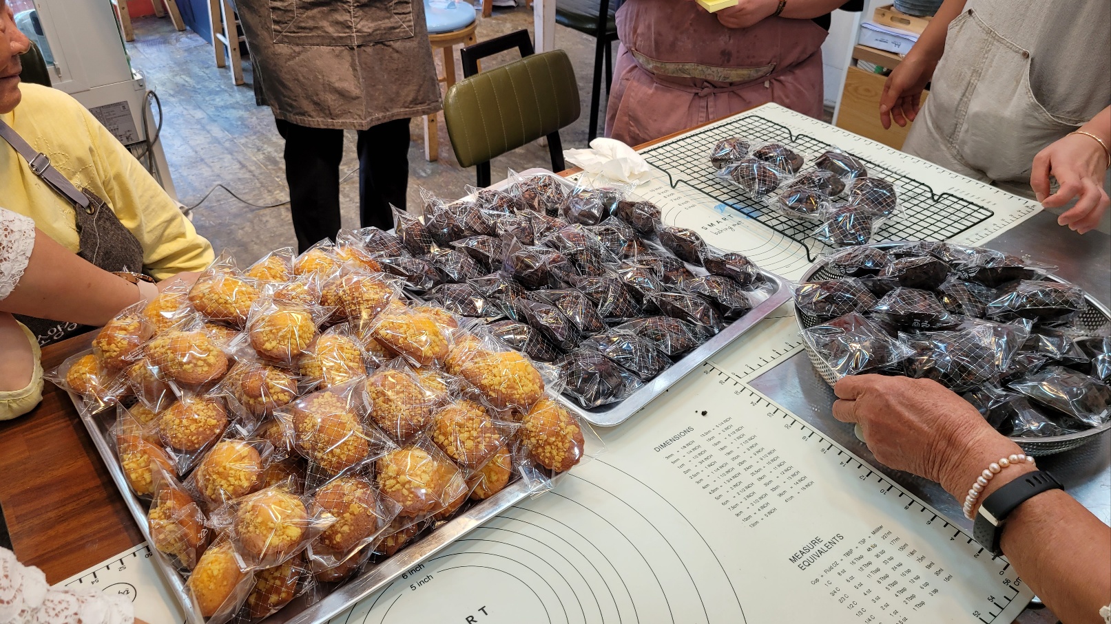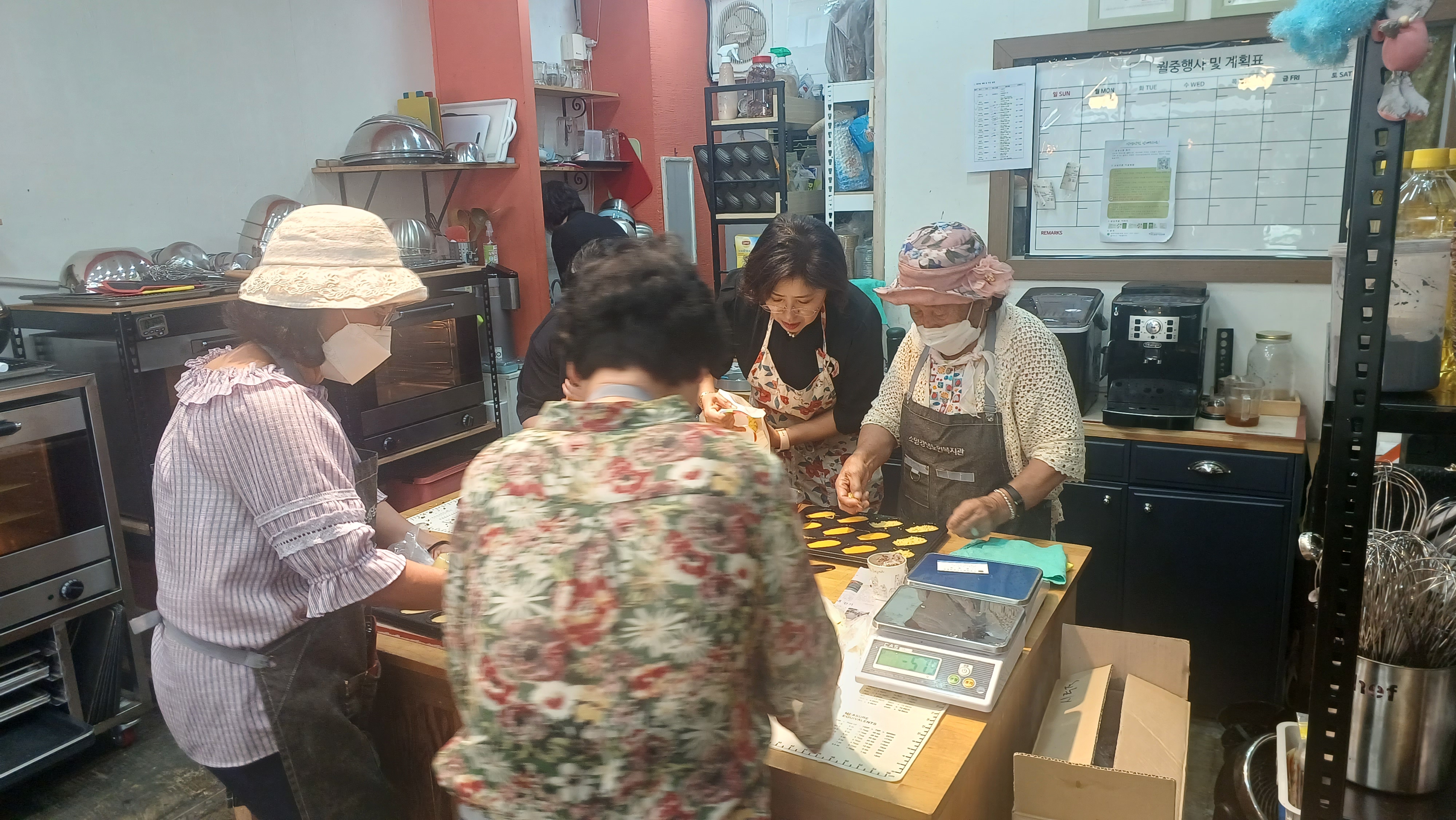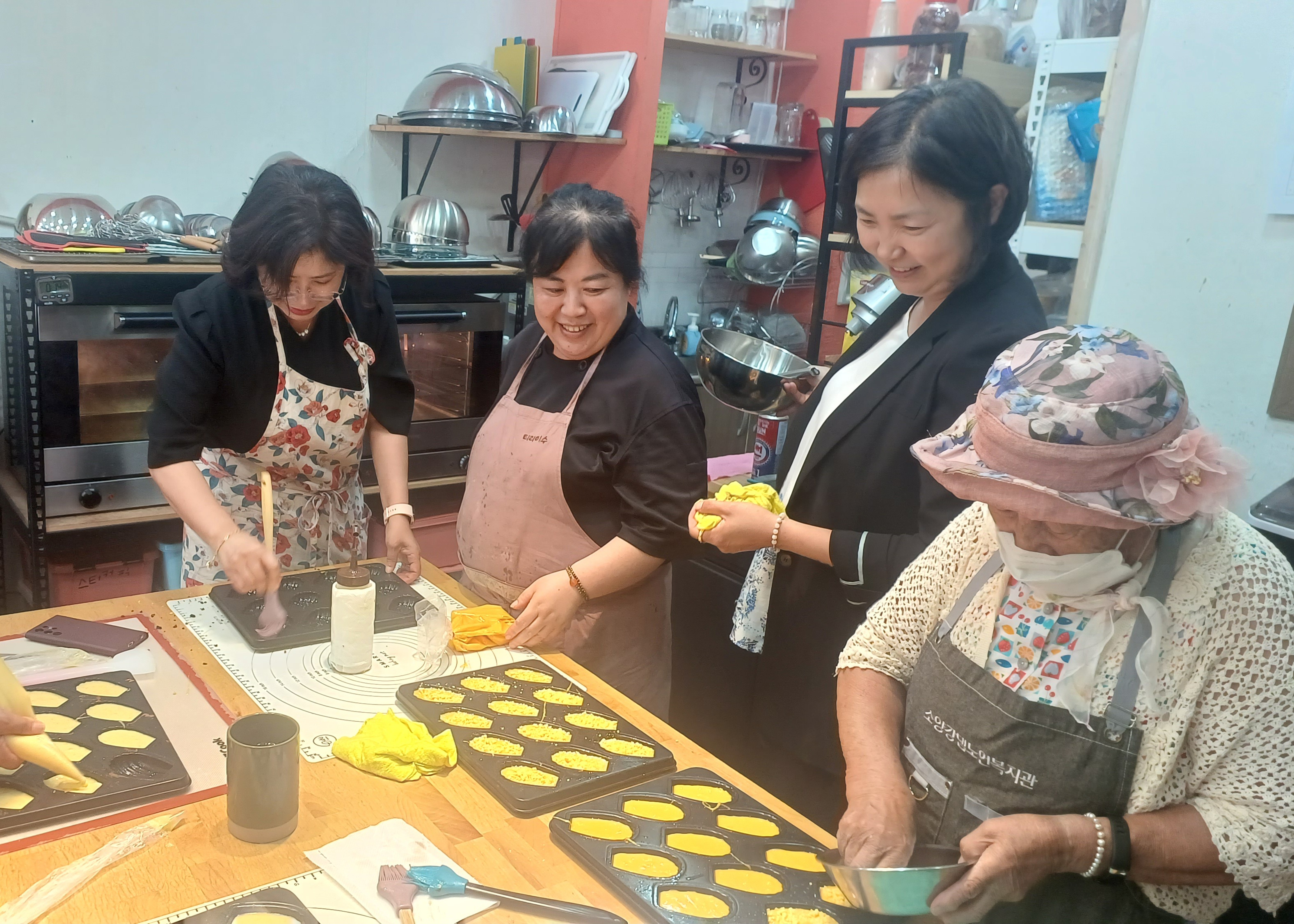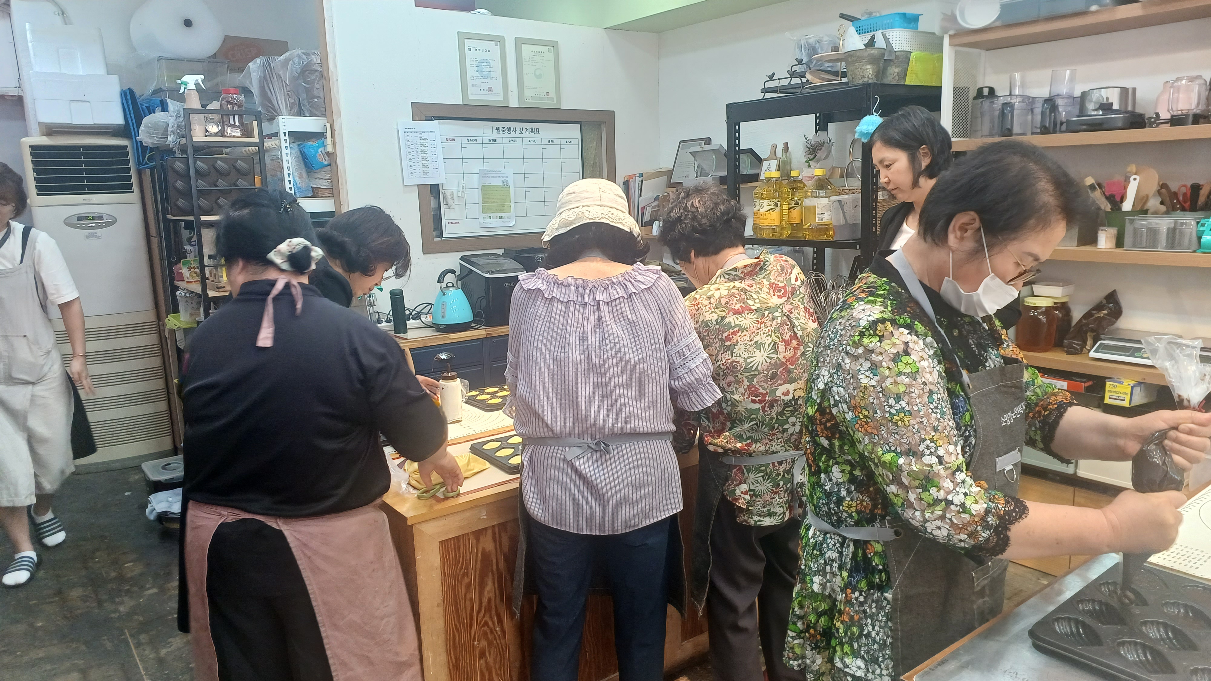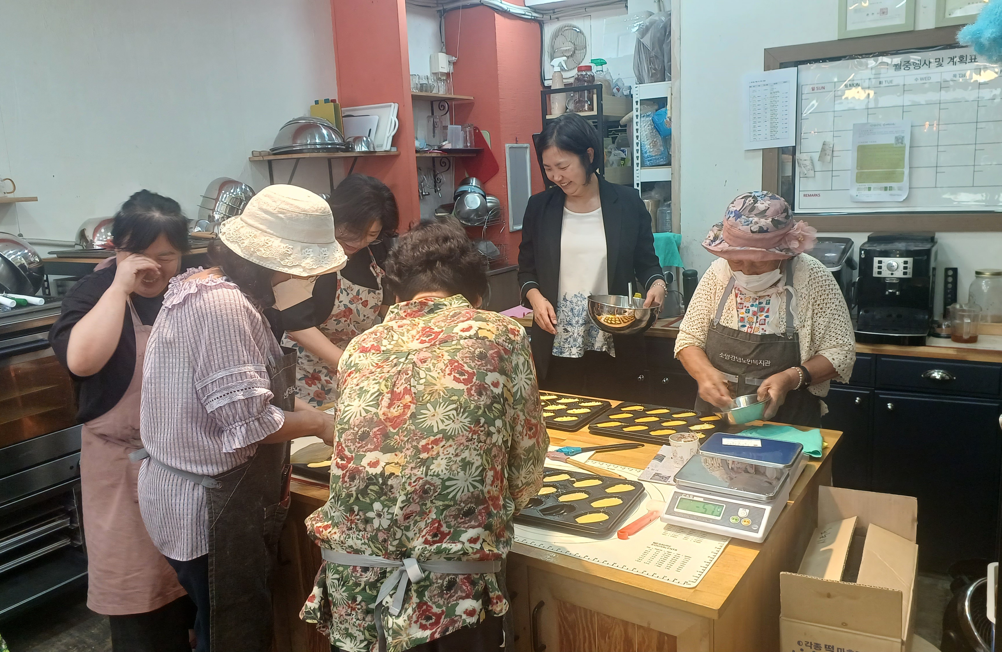 소양강댐노인복지관(관장 허미숙) 신북읍.사북면.북산면.동면 65세 어르신들에서 6명 선발하여 춘천시 효자로74-1(티라미수)제과(빵)만드는과정을 육동한 춘천시장 사모님과 복지관 관장님외 어르신6명과 2차 제과(빵) 베이킹 수업하면서 직접 반죽하고 만들고 굳고 포장하고 전과정을 실습하며 만들어 보았다.