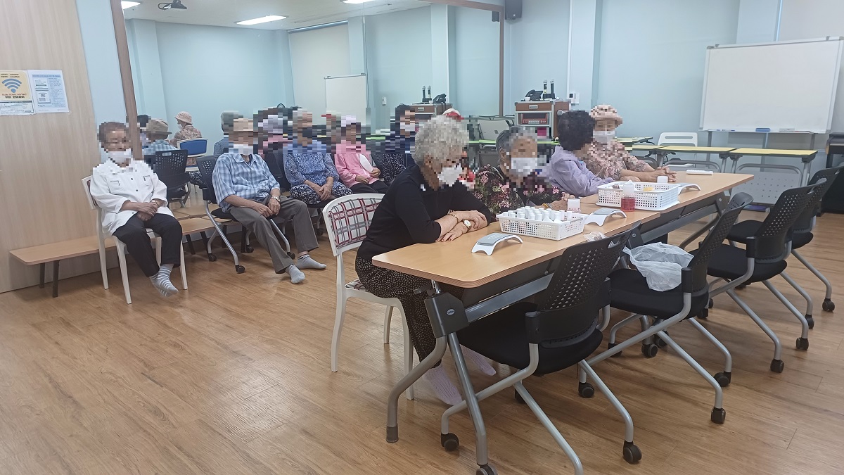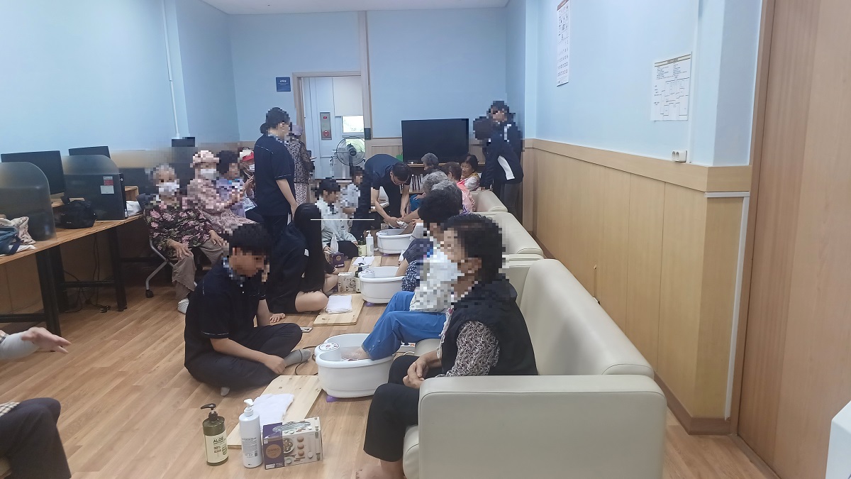 K-water나눔복지재단 소양강댐노인복지관(관장 허미숙) 신북읍.사북면.북산면.동면 65세이상 어르신들의 건강을 위하여 2023.09.13일 오후13:30:00~15:30분까지 신북읍 율문리 소재 한샘고등학교 교사2명 학생17명은 바이오코스메틱과 &RCY봉사동아리 노인 어르신 50명이상 발 맛사지. 메니큐어봉사활동. 칠교놀이봉사. 등 어르신들의 건강을 위하여 봉사활동을 하였다.