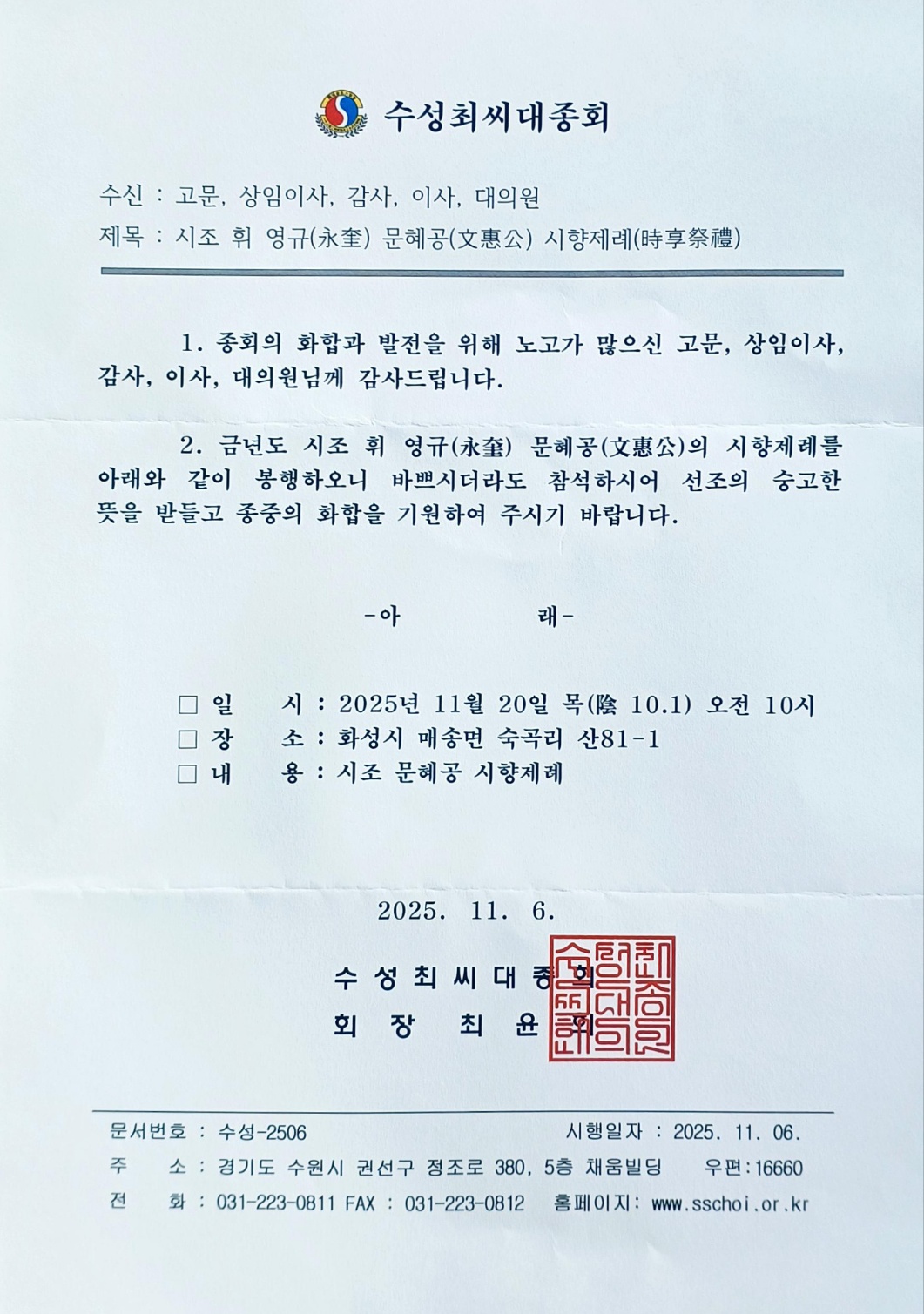| 수성최씨 대종회 사무실 (1) | 2025.10.28 |